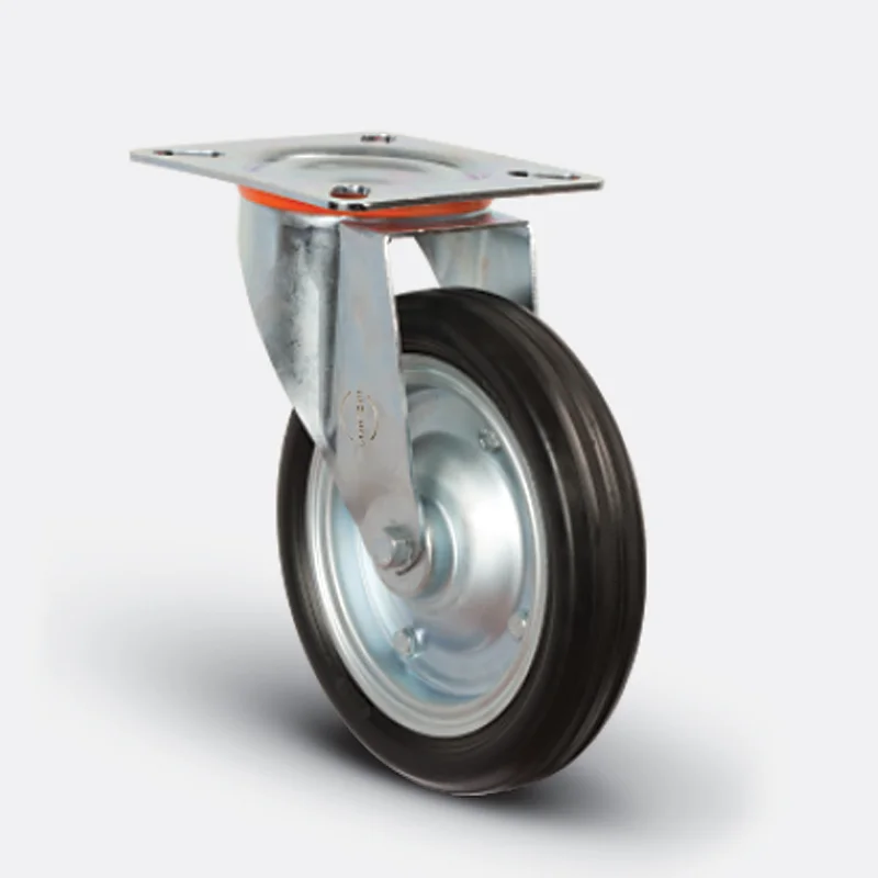 Preslenmiş çelik saç kasnak, siyah kauçuk (85 Shore A), jant kapaksız, bilyalı rulman yataklı