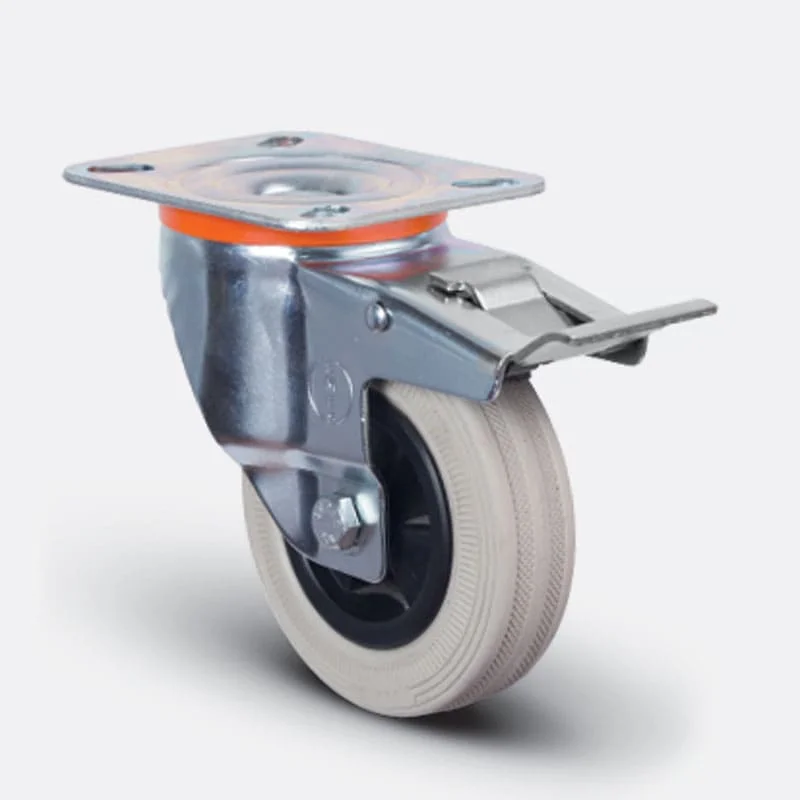 EM 01 MMRG 125 F - Döner Tablalı Frenli Kauçuk (İz Bırakmaz) Teker 125 mm