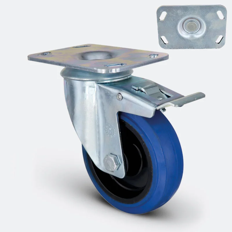 EM 01 ZMRM 125 F - Döner Tablalı Frenli Mavi Kauçuk (Elastik) Teker 125 mm