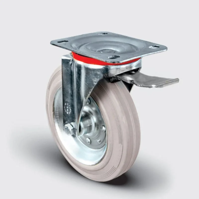 EM 03 SPRG 200 F - Civata Bağlantılı Frenli Kauçuk (İz Bırakmaz) Teker 200 mm