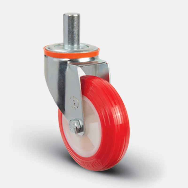 Preslenmiş çelik saç, beyaz çinko kaplama, çift bilya yataklı, döner başlık, plastik toz koruması, cıvata ve somunlu teker aksı