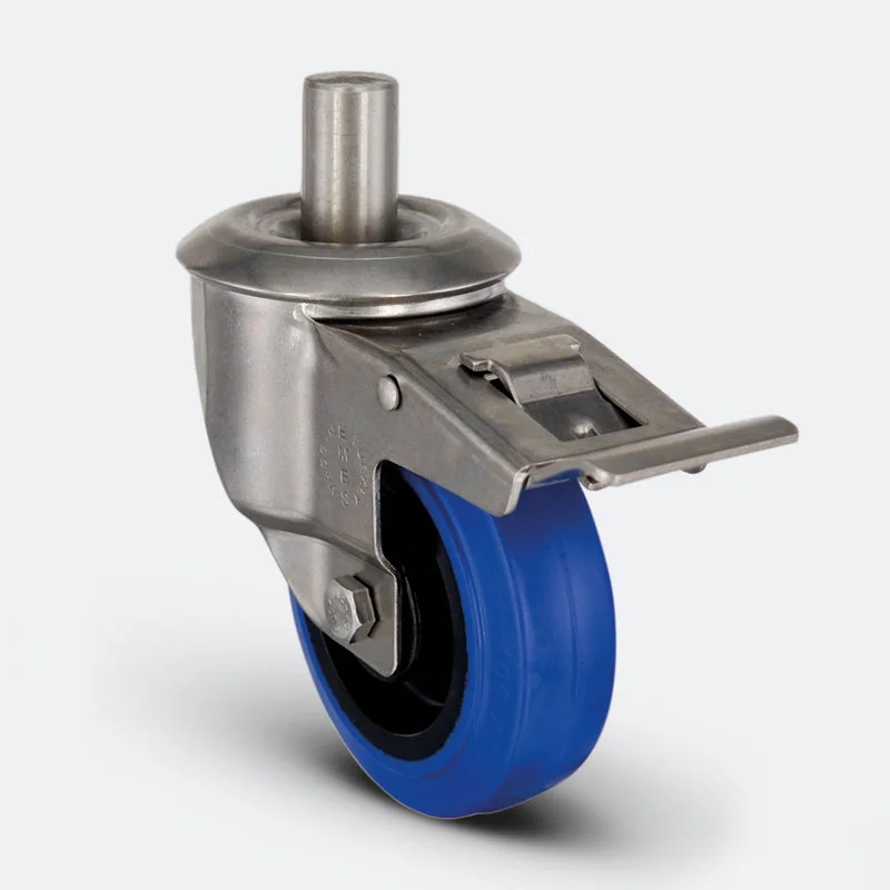 EM 03 ZMRM 125 F - Civata Bağlantılı Frenli Mavi Kauçuk (Elastik) Teker 125 mm