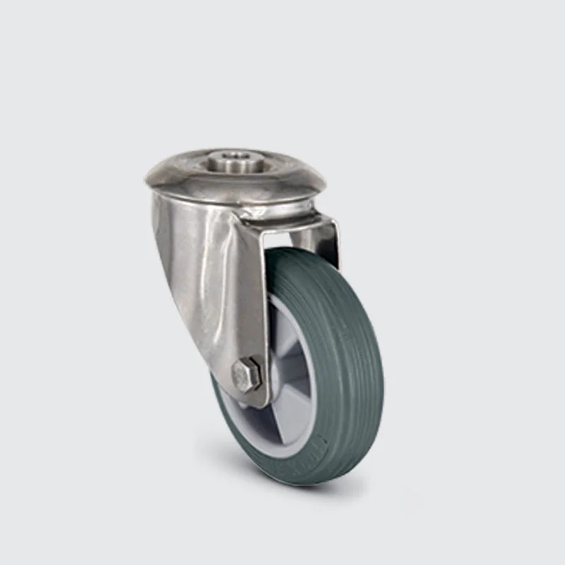 Preslenmiş çelik saç, beyaz çinko kaplama, çift bilya yataklı, döner baslık, plastik toz koruması, cıvata ve somunlu teker aksı