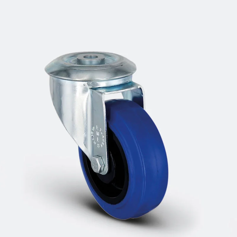 EM 04 ZMRM 100 - Civata Bağlantılı Mavi Kauçuk (Elastik) Teker 100 mm