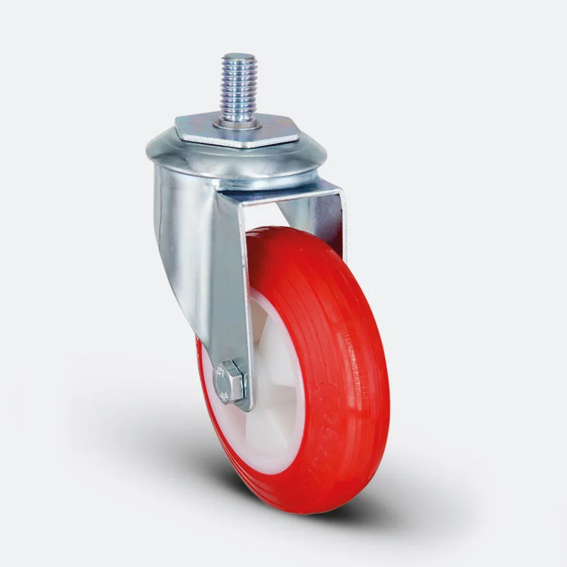 Preslenmiş çelik saç, beyaz çinko kaplama, çift bilya yataklı, döner başlık, plastik toz koruması, cıvata ve somunlu teker aksı