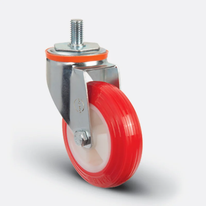 Preslenmiş çelik saç, beyaz çinko kaplama, çift bilya yataklı, döner başlık, plastik toz koruması, cıvata ve somunlu teker aksı