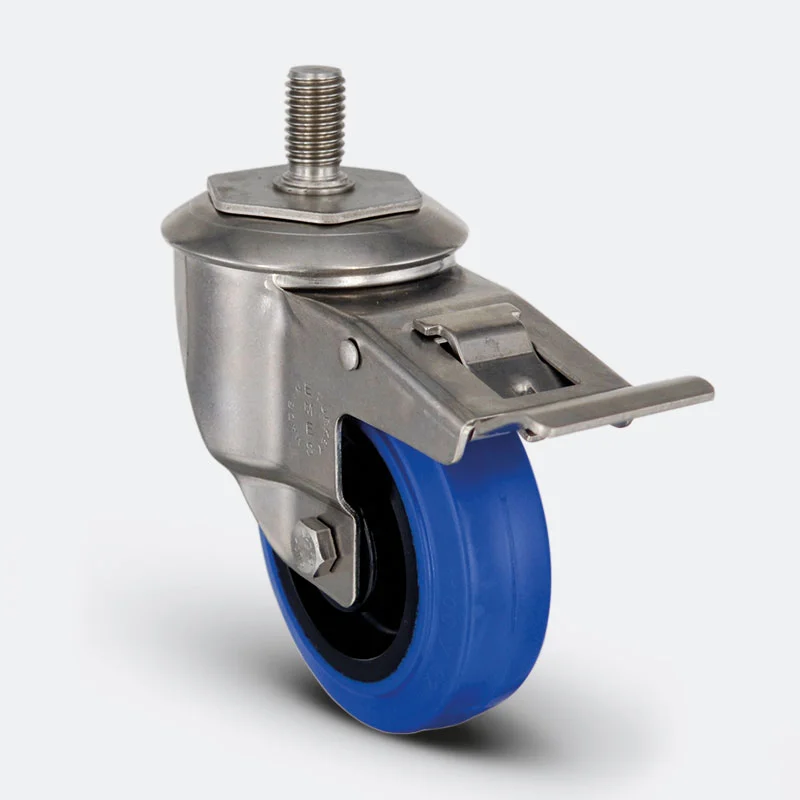 EM 05 ZMRM 100 F - Civata Bağlantılı Frenli Mavi Kauçuk (Elastik) Teker 100 mm