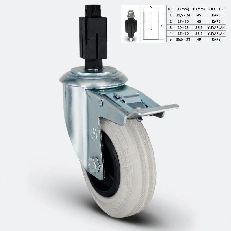 EM 07 MKRG 125 F - Civata Bağlantılı Frenli Kauçuk (İz Bırakmaz) Teker 125 mm