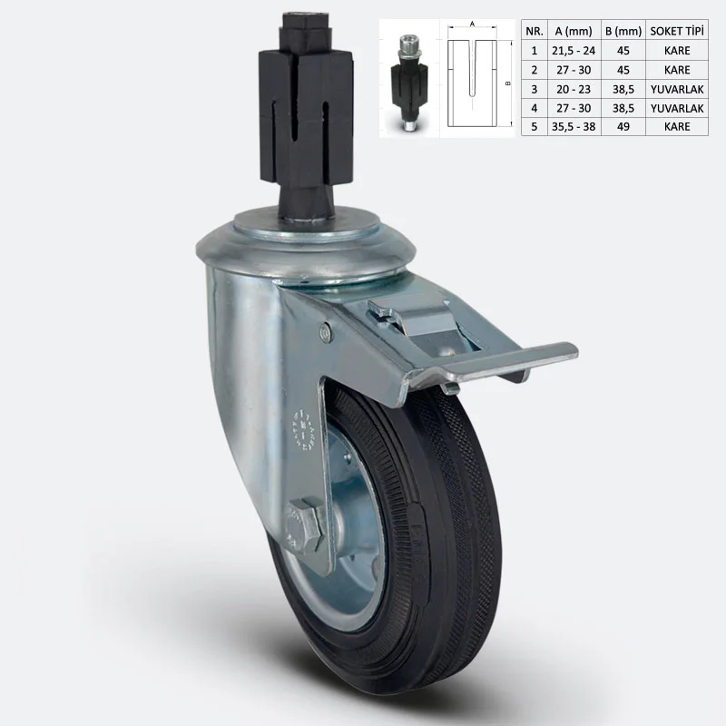 Civata Bağlantılı Frenli Kauçuk Teker - 75 kg
