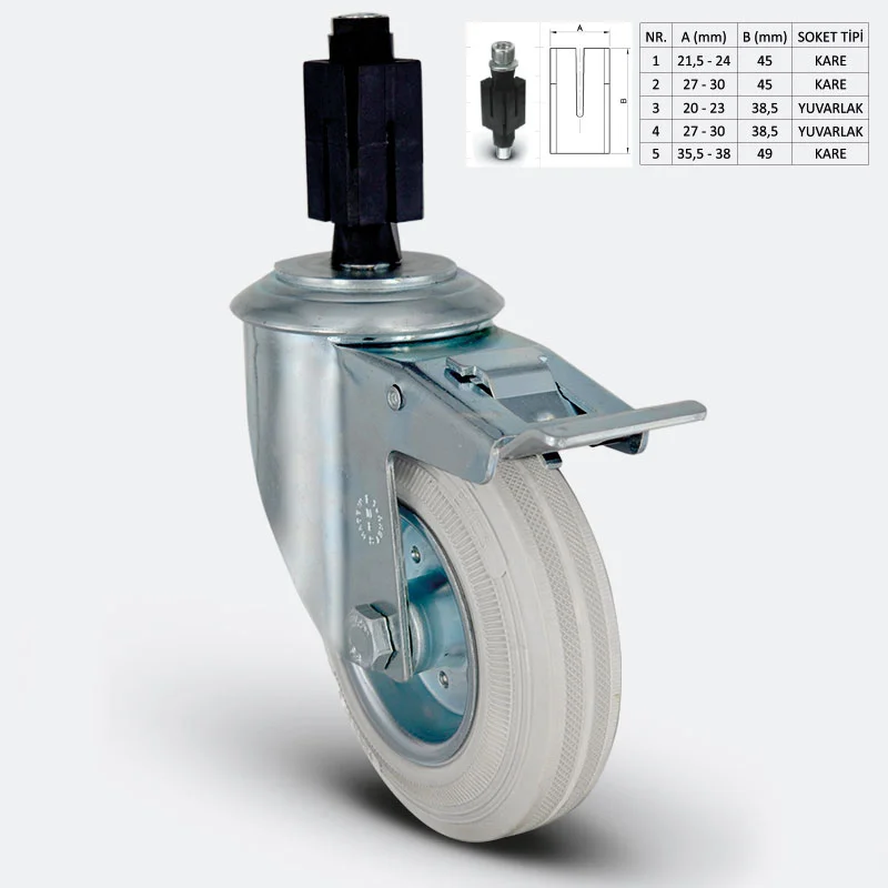 EM 07 SPRG 80 F - Civata Bağlantılı Frenli Kauçuk (İz Bırakmaz) Teker 80 mm