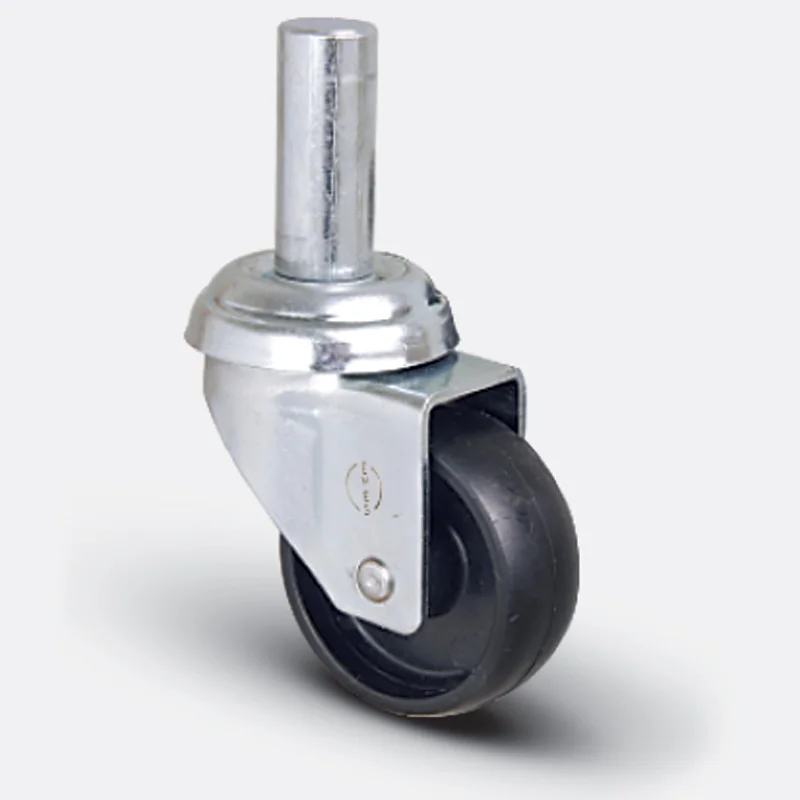 Preslenmiş çelik saç, beyaz çinko kaplama, çift bilya yataklı, döner başlık, perçinli veya cıvatalı teker aksı