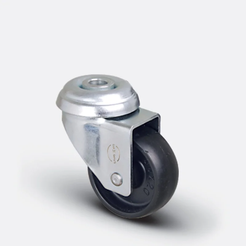Preslenmiş çelik saç, beyaz çinko kaplama, çift bilya yataklı, döner başlık, perçinli veya cıvatalı teker aksı