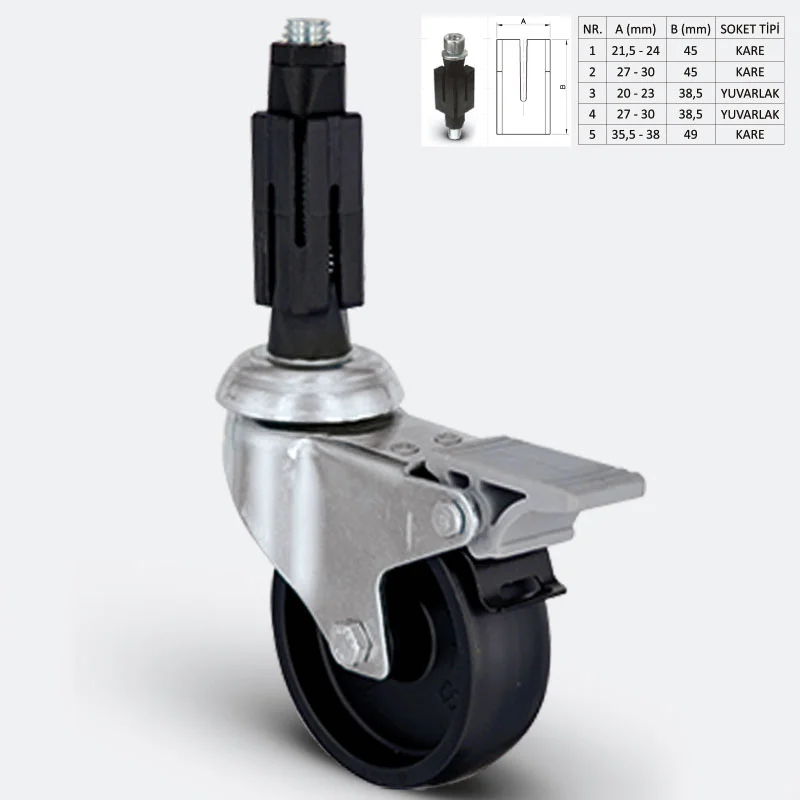 Civata Bağlantılı Frenli Polipropilen Teker - 50 kg