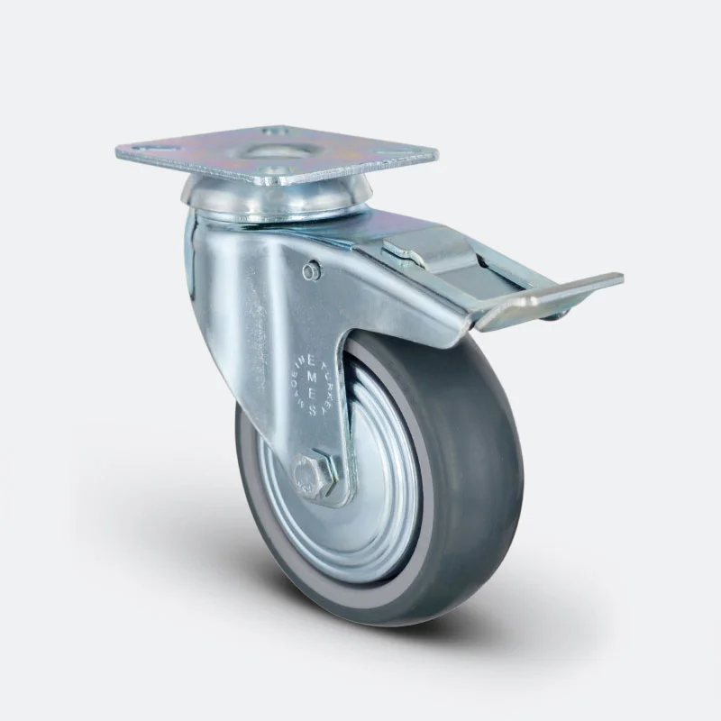 ER 01 MBT 80 F - Döner Tablalı Frenli Termoplastik Kauçuk Teker 80 mm