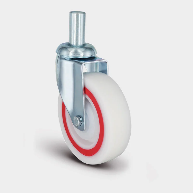 Preslenmiş çelik sac, beyaz çinko kaplama, çift bilya yataklı, döner başlık, civata ve somunlu teker aksı