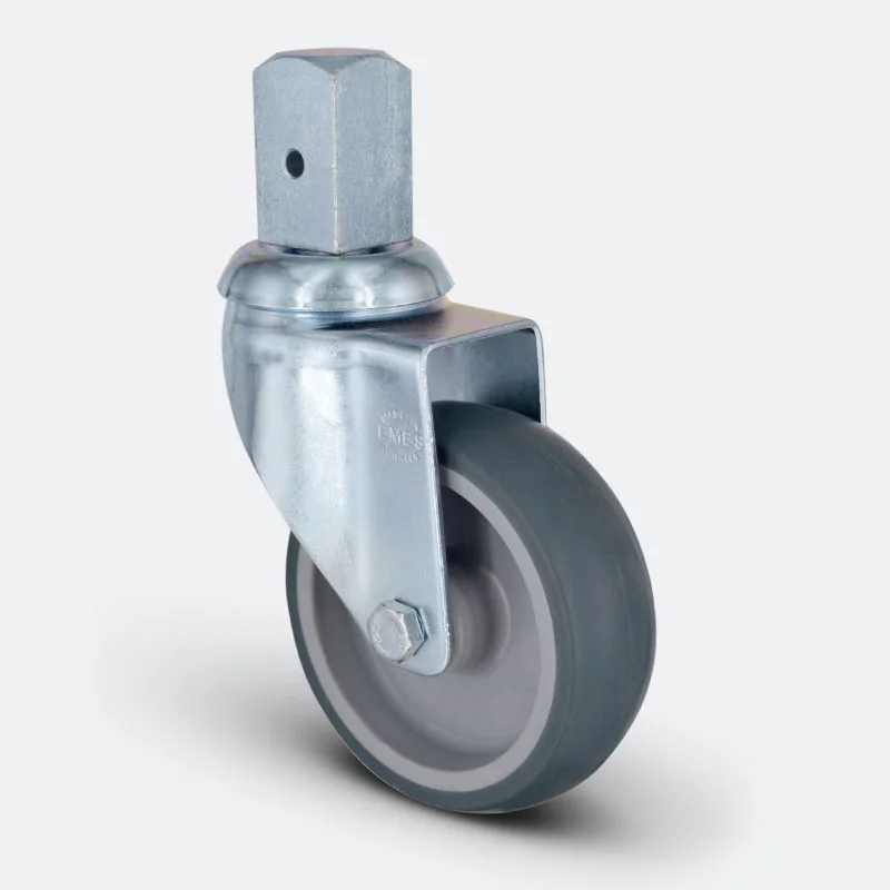 Standart ES serisi maşa uygulamaları, market sepet arabalar için düzenlenmiş (BORUSUZ BĞL.), boru cıvata somun montajlı veya perçinli teker aksı