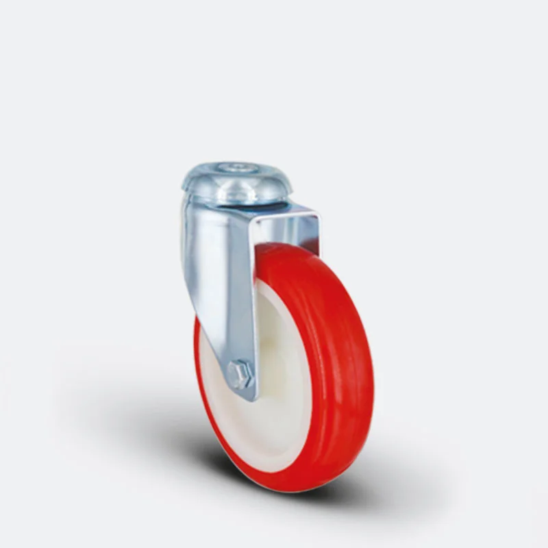 Preslenmiş çelik saç, beyaz çinko kaplama, çift bilya yataklı, döner başlık, cıvata ve somunlu teker aksı