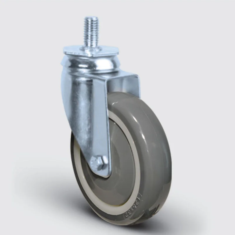 Preslenmiş çelik sac, beyaz çinko kaplama, çift bilya yataklı, döner başlık, civata ve somunlu teker aksı.