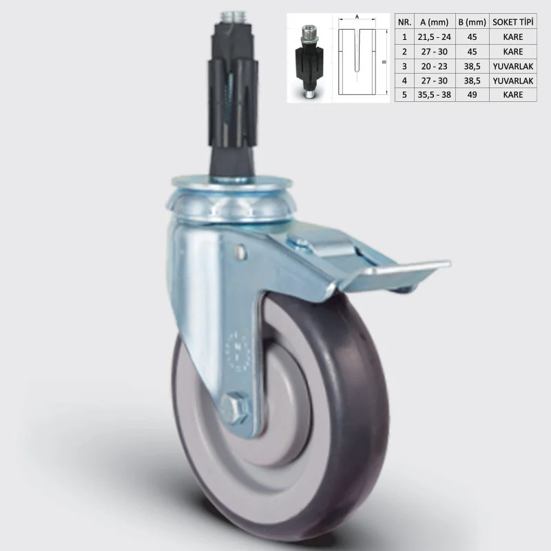 ER 07 MBR 100 F - Civata Bağlantılı Frenli Kauçuk Teker 100 mm