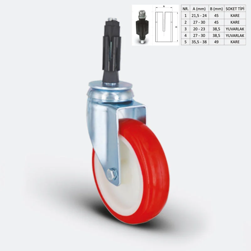 Preslenmiş çelik saç, beyaz çinko kaplama, çift bilya yataklı, döner başlık, cıvata ve somunlu teker aksı