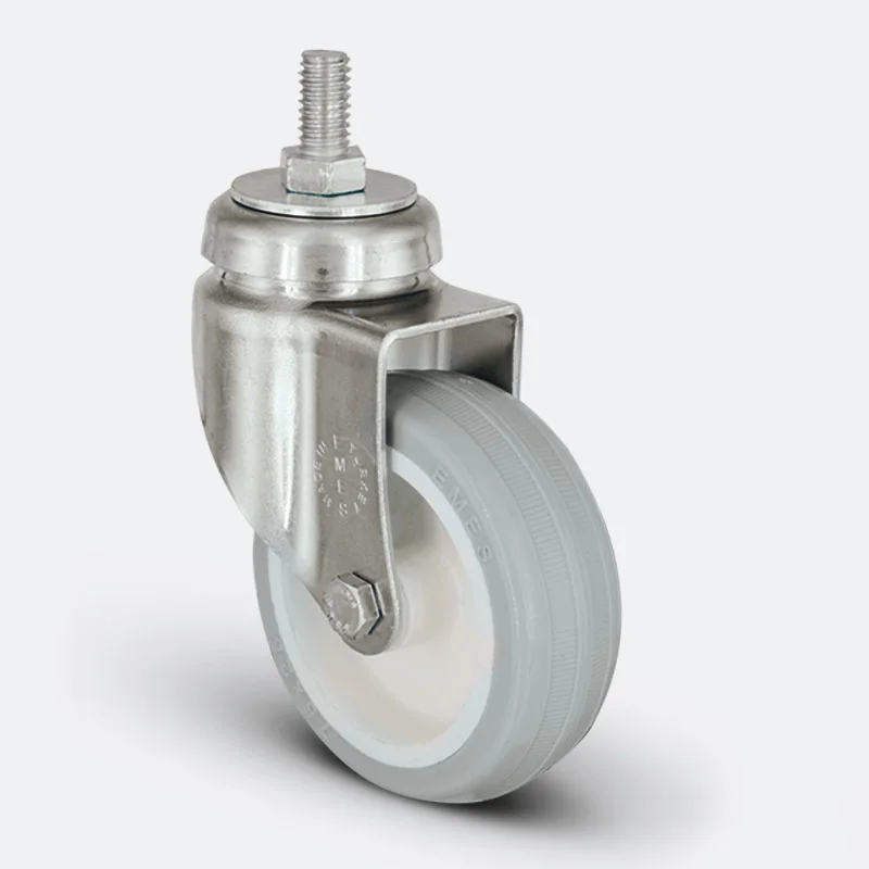 Preslenmiş çelik sac, beyaz çinko kaplama, çift bilya yataklı, döner başlık, perçinli teker aksı