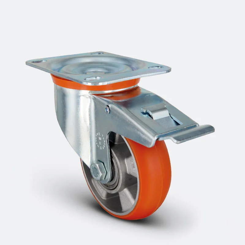 Döner Tablalı Frenli Poliüretan (Balık Sırtı) Teker - 350 kg