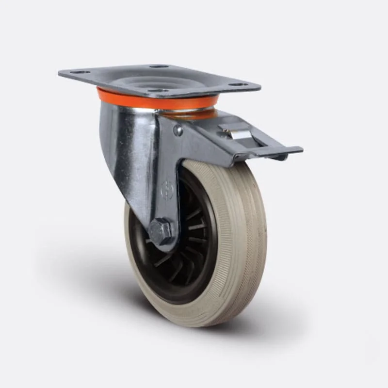 EZ 01 MKRG 125 F - Döner Tablalı Frenli Kauçuk (İz Bırakmaz) Teker 125 mm