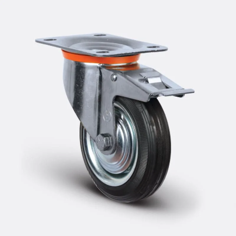 EZ 01 SMR 100 F - Döner Tablalı Frenli Kauçuk Teker 100 mm