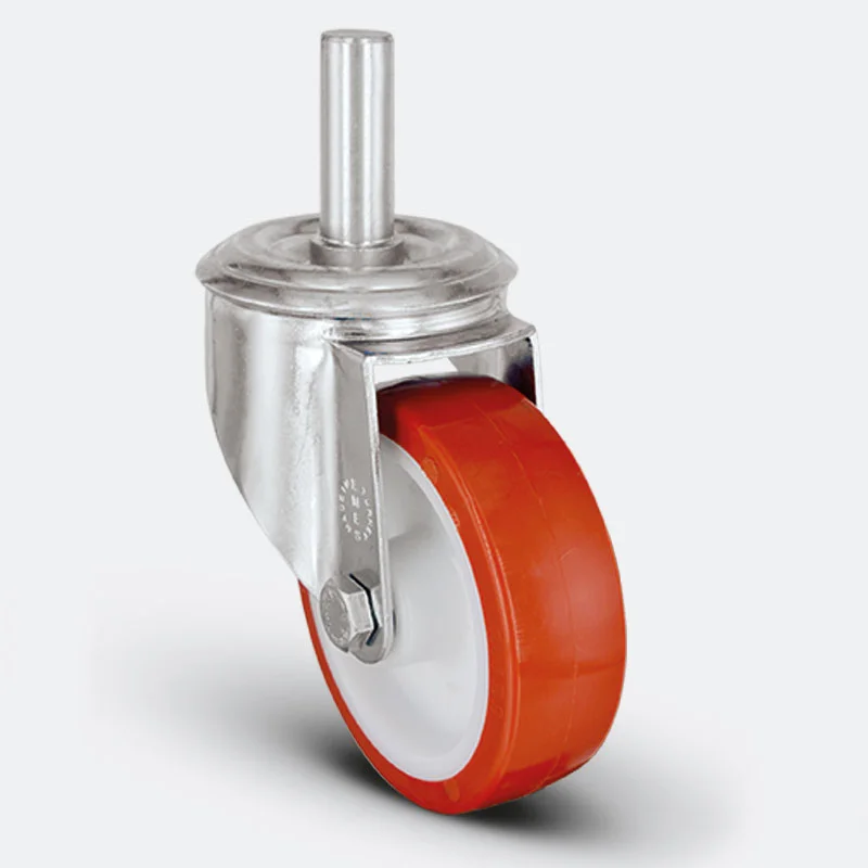 Preslenmiş çelik saç, sarı çinko kaplama, çift bilya yataklı, döner başlık, plastik toz koruması, cıvata ve somunlu teker aksı