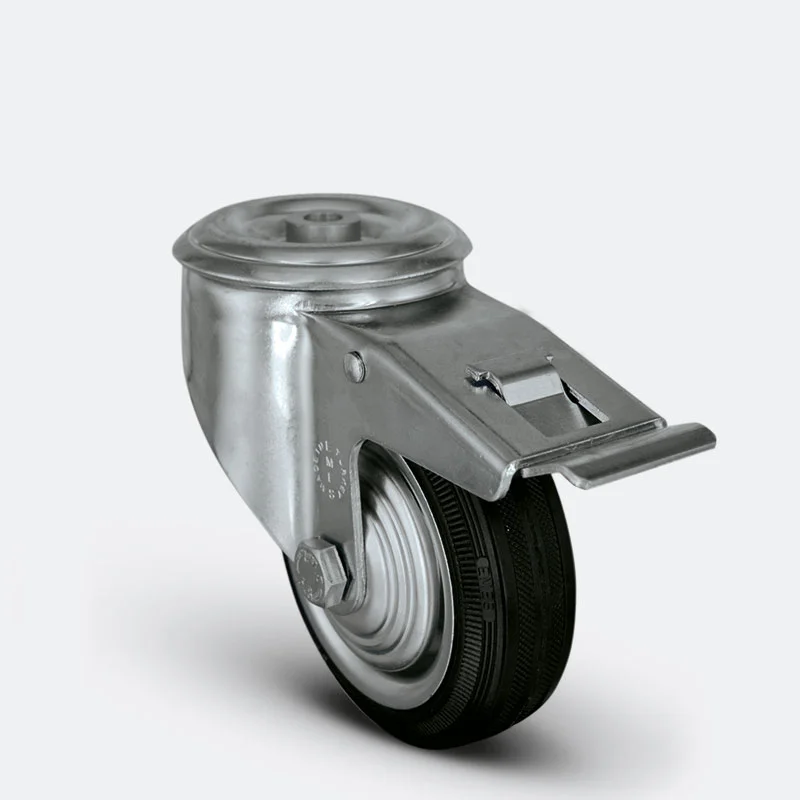 EZ 04 SMR 100 F - Civata Bağlantılı Frenli Kauçuk Teker 100 mm