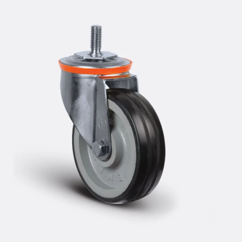 Döküm kasnak, siyah kauçuk kaplama (85 Shore A), jant kapaksız, bilya rulman yataklı
