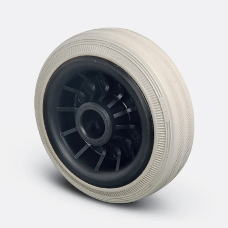 Polipropilen kasnak, gri kauçuk , iz bırakmaz 85 Shore A), jant kapaksız, kendinden burçlu yataklı, -20°C ile +60°C