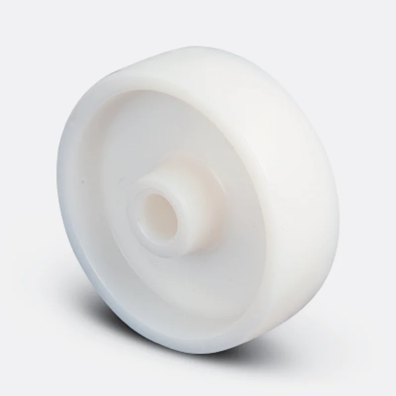 Poliamid teker ( Naturel beyaz ), jant kapaksız, kendinden burçlu yataklı, -20°C ile +80°C